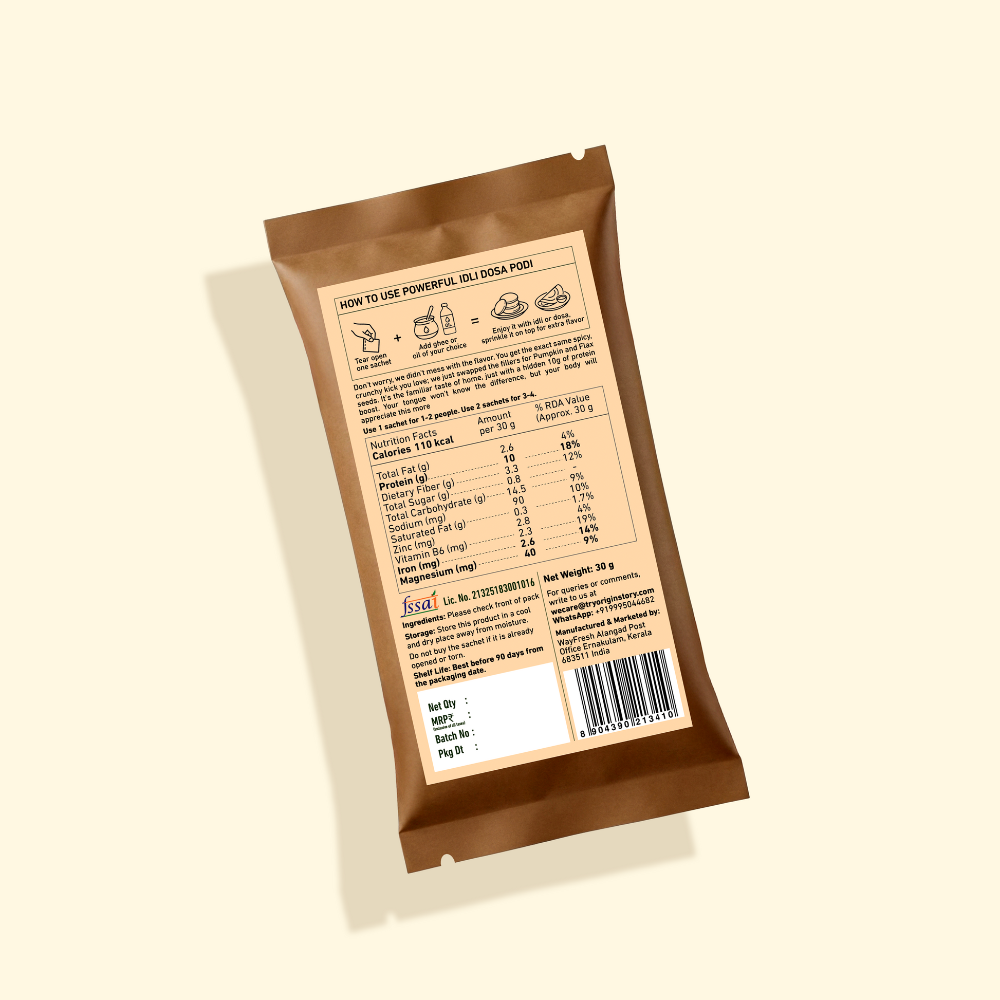 How to Use: Tear open one sachet | Add ghee or oil of your choice | Enjoy it with idli or dosa, sprinkle it on top for extra flavor